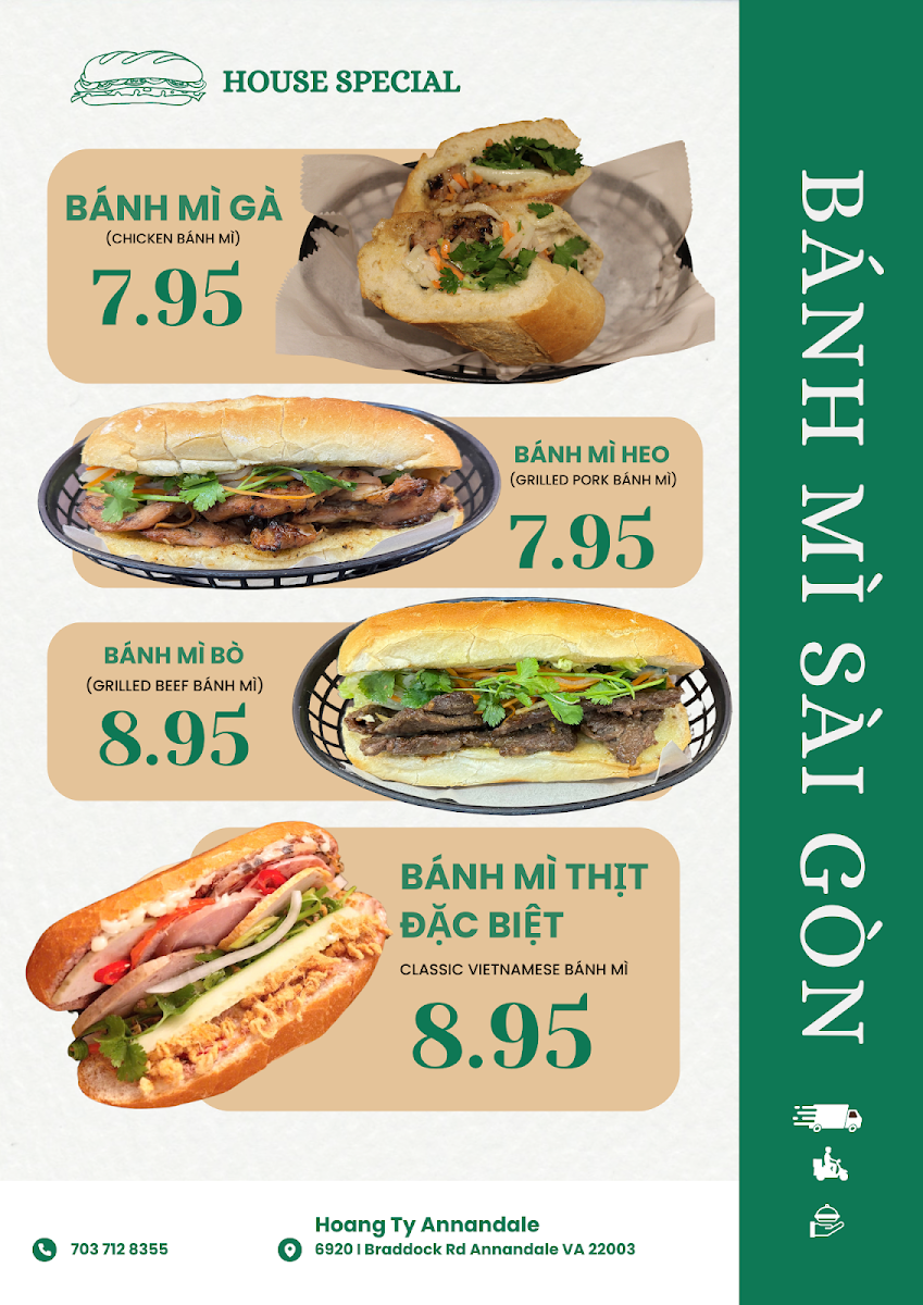 Welcome to Phở Công Lý - Noodle and Grill, a hidden gem nestled in the heart of Annandale, VA. This Vietnamese restaurant delivers an authentic culinary experience, featuring a diverse menu that caters to all cravings. Start with classic Vietnamese sandwiches (Bánh mì), available with juicy pork, chicken, or beef for just $9.95. You’ll also find aromatic dishes like the hearty Vietnamese "Shaking" Beef Cube and the comforting Beef Stew (Bò Kho), both bursting with rich flavors. Fried rice and crispy stir-fried egg noodles round out the offerings, ensuring satisfaction in every bite.